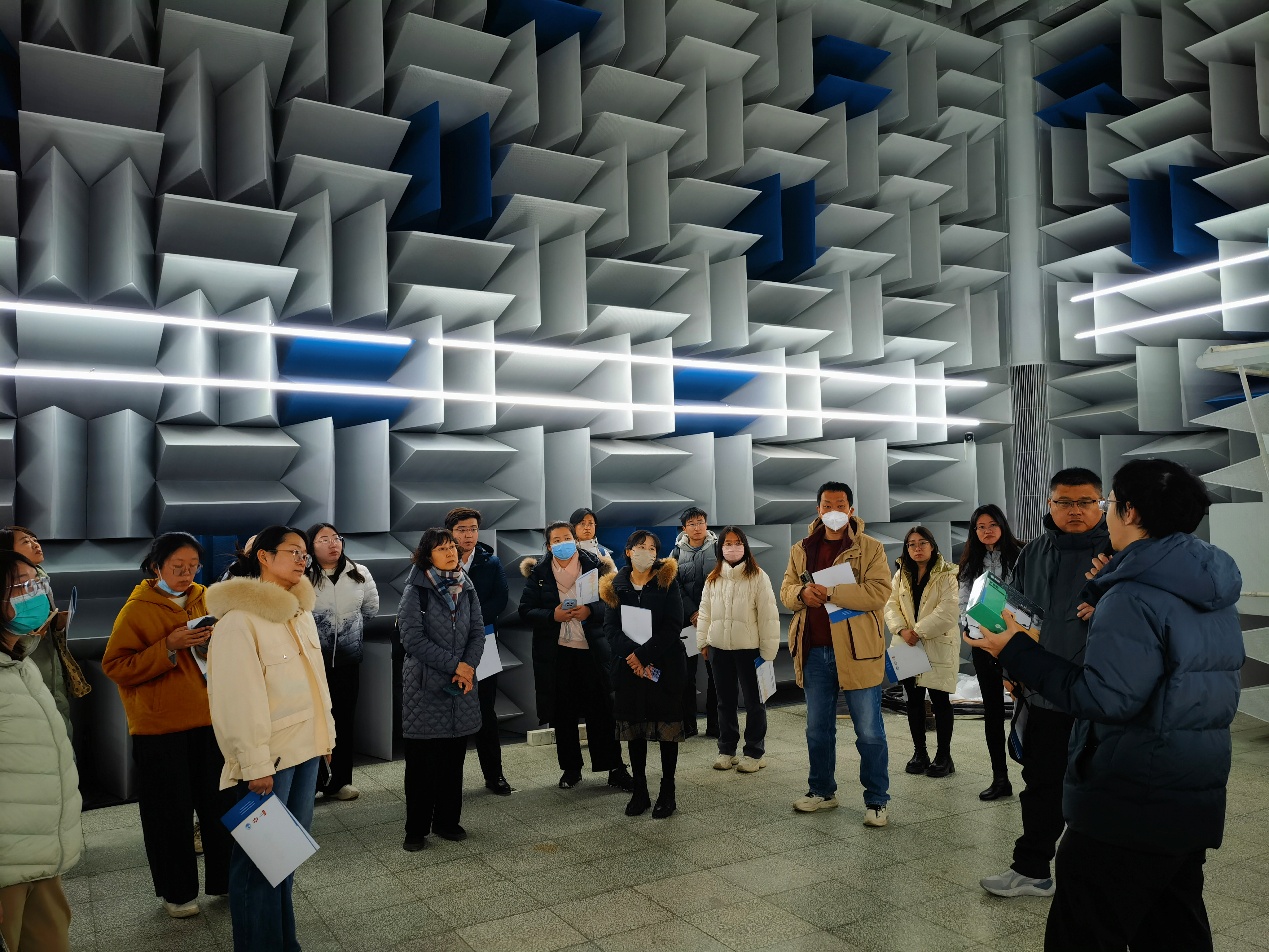 随后,教师们走进声学所的特色实验室,身临其境地感受声音的奥秘。在混响室,教师们体验了声音被“放大”的奇妙听感,以及混响室在科研领域的应用。紧接着,大家又步入了与混响室形成鲜明对比的半消声实验室,这个几乎“吞噬”掉所有声音反射的特殊空间里,体验了异常安静、声音直达的纯粹环境。科研人员首先详细讲解了这种特殊环境如何通过消除声反射,创造出进行精确声学测量所必需的条件,在此基础上,教师们亲“眼”见证了指向性扬声器的神奇效果:声音被汇聚成一道狭窄的声束,只有处在声束路径上的人才能清晰听见,生动展示了声音的定向传播原理。此外,现场还演示了超声无损探伤技术,教师们了解到高频声波如何像“透视眼”一样,在不破坏材料的前提下检测其内部的微小缺陷,深刻体会到声学在工业检测领域的关键应用。