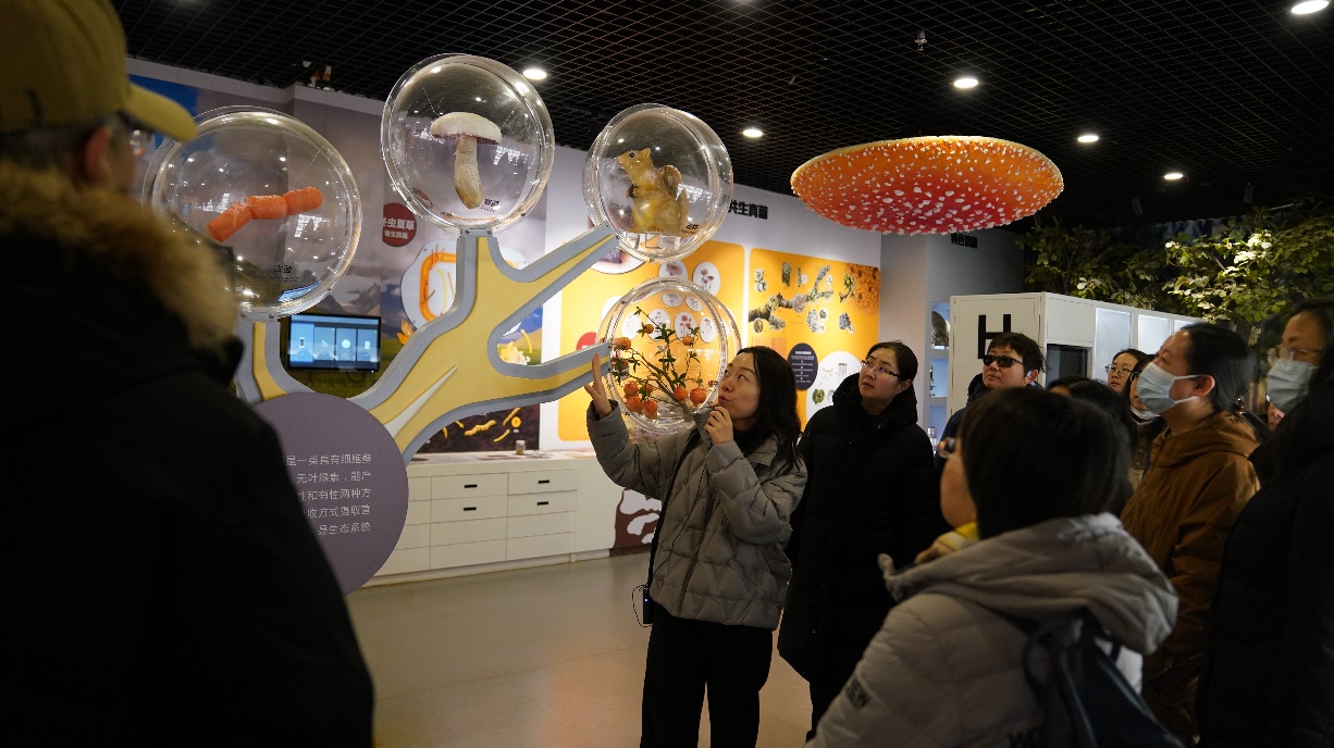 活动伊始,教师们步入了中国科学院微生物研究所菌物标本馆的“真菌与人类”展厅。在微生物所杜卓高级工程师的生动讲解下,一个多彩的真菌世界展现在大家眼前。从北京周边寻找大型真菌的“秘籍”,到神奇的共生菌根,再到令人震撼的巨型灵芝标本和用菌物创作的精美画作,教师们对真菌的多样性、生态价值和应用潜力有了全新的认识。